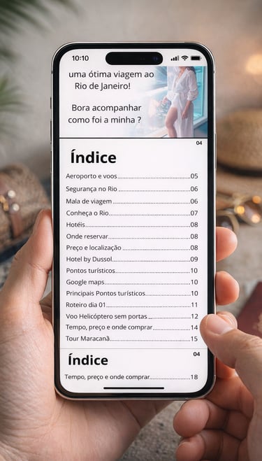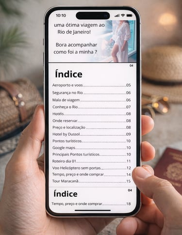 Ao longo do ebook, compartilhamos orientações sobre segurança, o que levar na mala, como otimizar o tempo entre os pontos turísticos e como montar circuitos inteligentes para não perder horas no trânsito. Tudo é explicado de forma simples, prática e baseada no que realmente funcionou na nossa viagem. Este não é apenas um guia turístico, mas um relato sincero, humano e prático, ideal para quem quer viajar com mais segurança, planejamento, experiências memoráveis e sem depender de roteiros genéricos. Um material feito para inspirar, orientar e acompanhar você do início ao fim da sua viagem ao Rio de Janeiro.